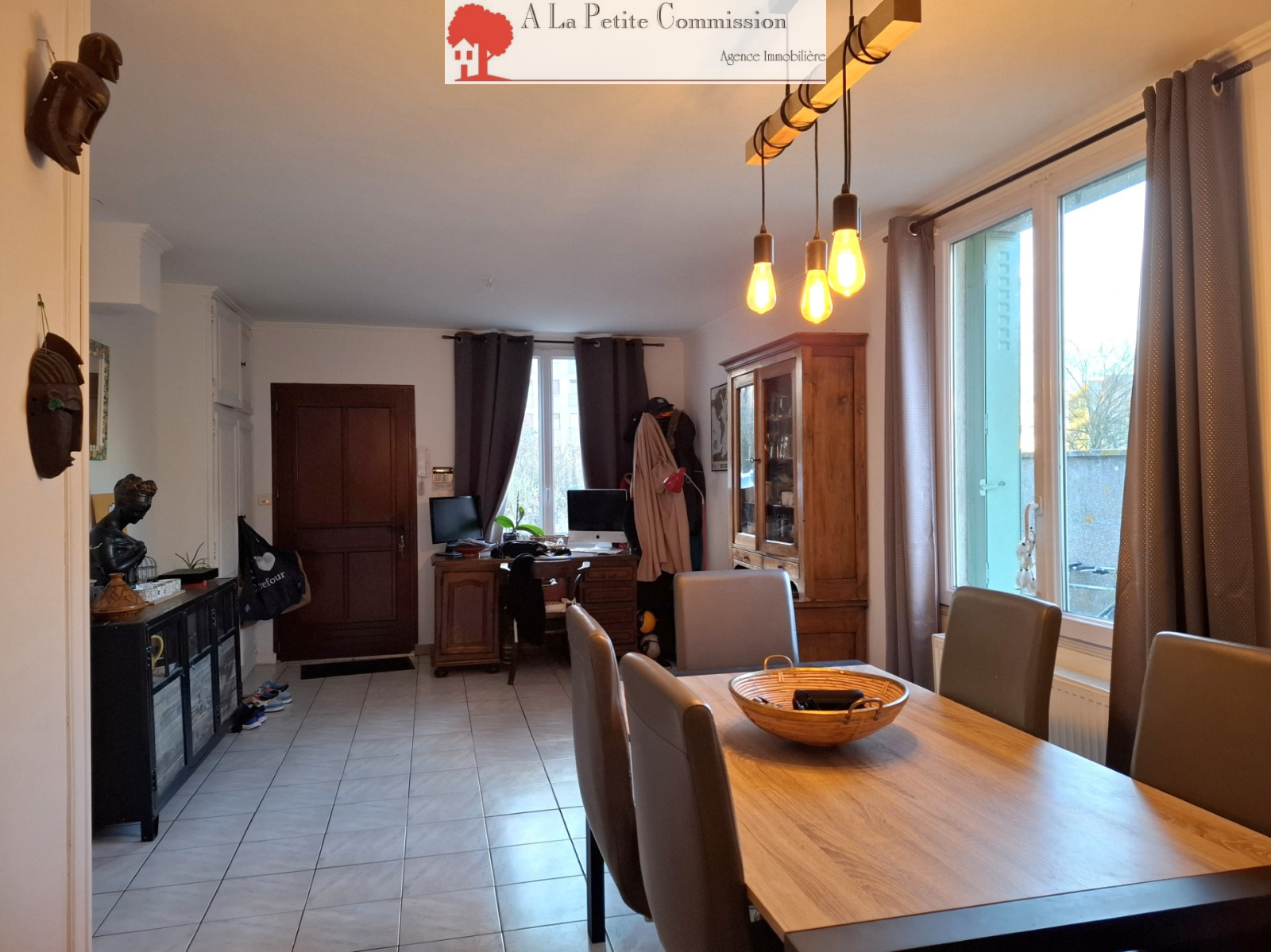 L'Agence Immobilière La Petite Commission vous propose à la vente ce pavillon des années 50 avec extension de 2021. Idéalement situé à proximité des commerces et des transports. Vous disposez de plain-pied, d'une chambre, d'une salle d'eau, d'un toilette indépendant, d'une cuisine aménagée et équipée, d'une salle à manger et d'un vaste séjour avec poêle à bois en accès terrasse. A l'étage, vous bénéficiez d'une chambre, d'un bureau et d'un second toilette. Le tout sur un terrain d'environ 1200 m² avec petite dépendance. Idéal premier achat!