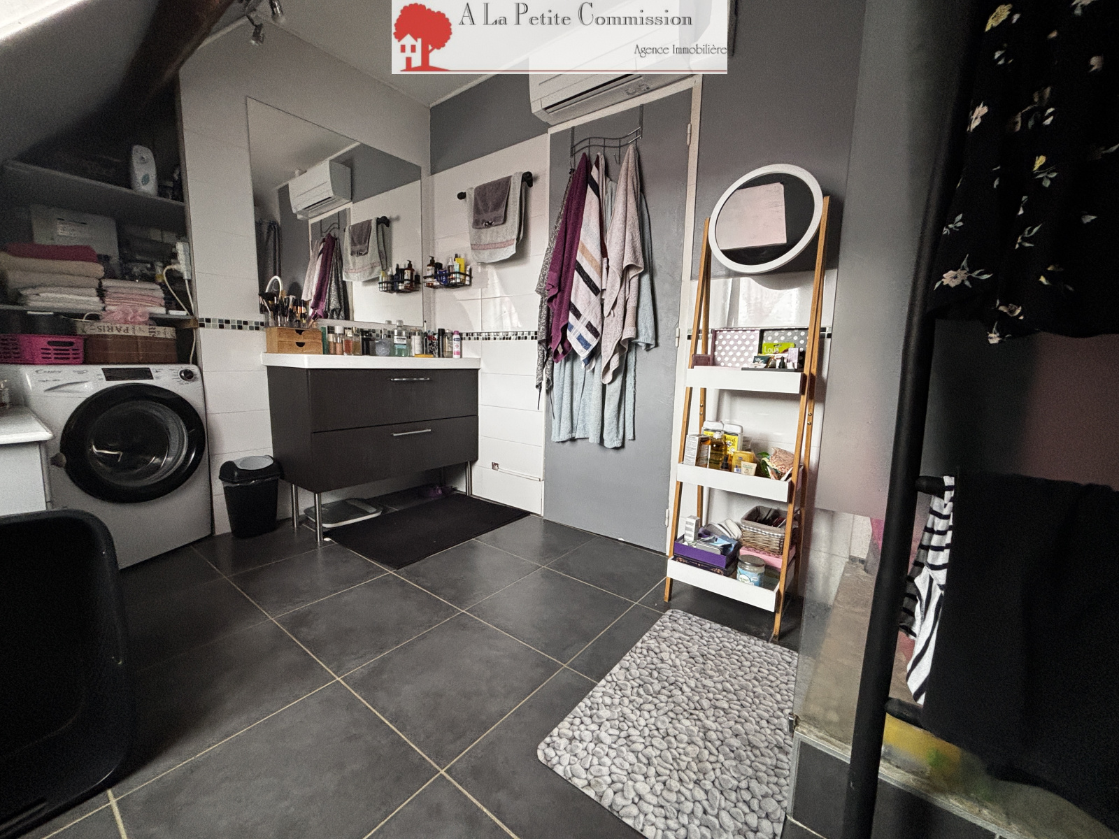 A l'étage palier desservant 3 chambres équipées de climatisation, salle de bains et wc.